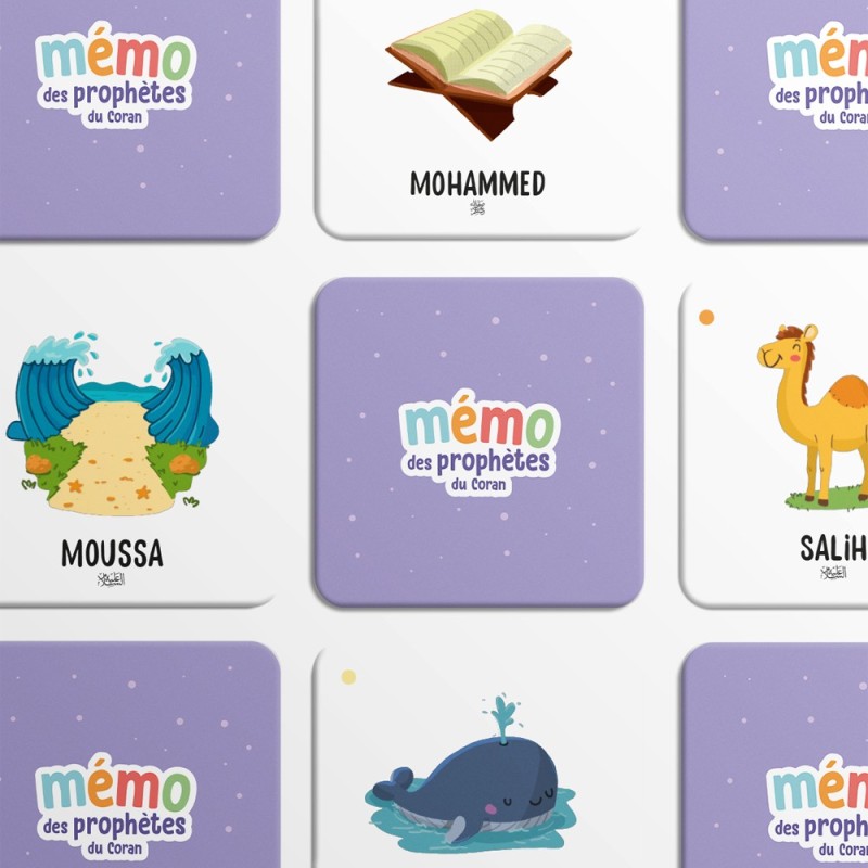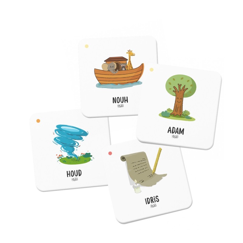 Jeu de Mémo – Les Prophètes du Coran Dès 3 ans Apprends à reconnaître les prophètes du Coran tout en t’amusant !Ce coffret contient 50 cartes solides et un fascicule explicatif pour découvrir chaque prophète à travers le jeu et la mémoire.